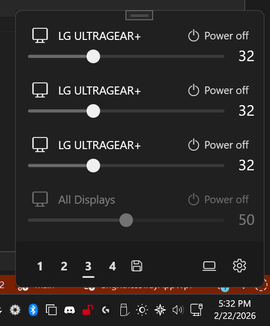 Still a work in progress. I'm nailing down the UX before touching backend. The backend will be very easy, but I want the UX to be comparable or to exceed Twinkle Tray since the goal is to replace that. This program surpasses Twinkle Tray in reliability (TT's backend is not good), and uses about a quarter the amount of memory: https://github.com/alchemyyy/BrightnessTrayAppWpf